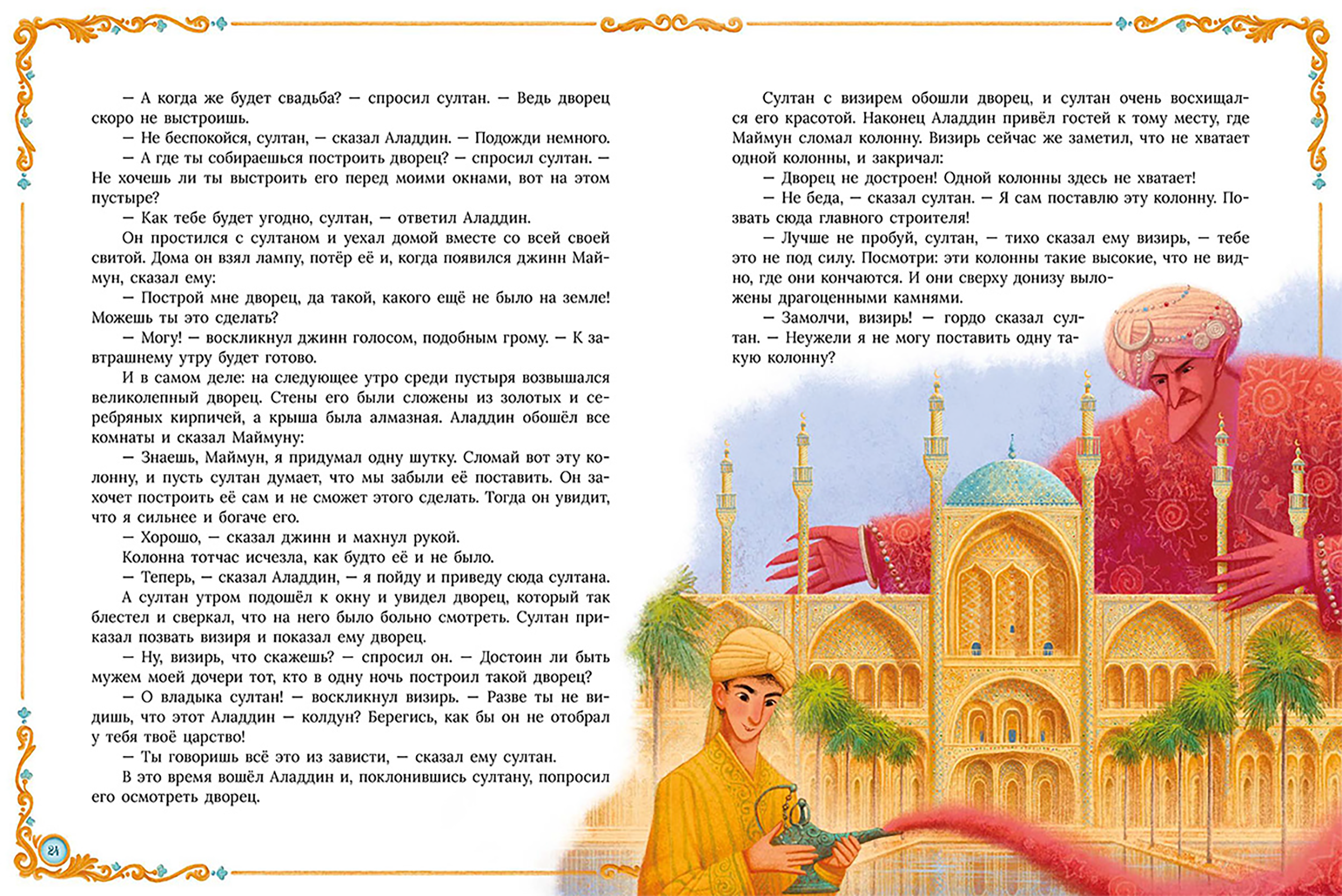 В книгу вошли любимые с детства сказки «Аладдин и волшебная лампа» и «Али-Баба и сорок разбойников».