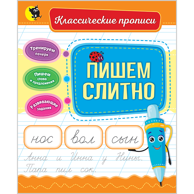 Пропись поможет освоить навык слитного письма. От букв и слогов ребёнок постепенно перейдёт к полноценным словам, а затем и к небольшим предложениям. В издании содержатся также развивающие задания, способствующие развитию внимания, орфографической зоркости и познавательной активности.
