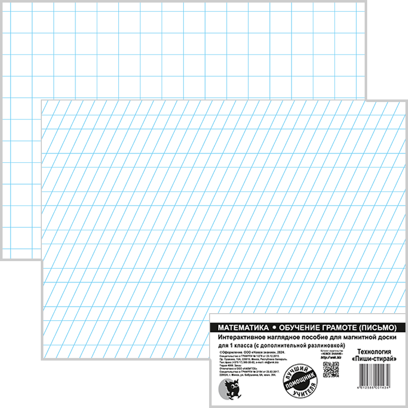 Интерактивное наглядное пособие представляет собой лист увеличенного формата А1. Его можно использовать как на уроках математики (стороной в клеточку), так и для обучения грамоте и письму в 1-м классе (разлинованной стороной). Благодаря технологии «пиши-стирай» пособие можно использовать неоднократно.