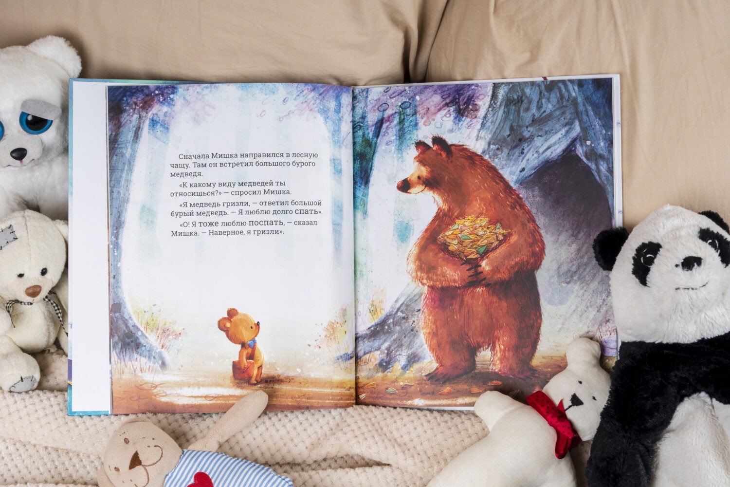 Маленький мишка очень хочет узнать, к какому виду медведей он относится. И чтобы разобраться в этом, он отправляется в путешествие. По дороге Мишка знакомится с очковым медведем, медведем гризли и другими. Но ни один из них не похож на него… Открой книгу, и ты узнаешь, нашёл ли Мишка ответ на свой вопрос?!